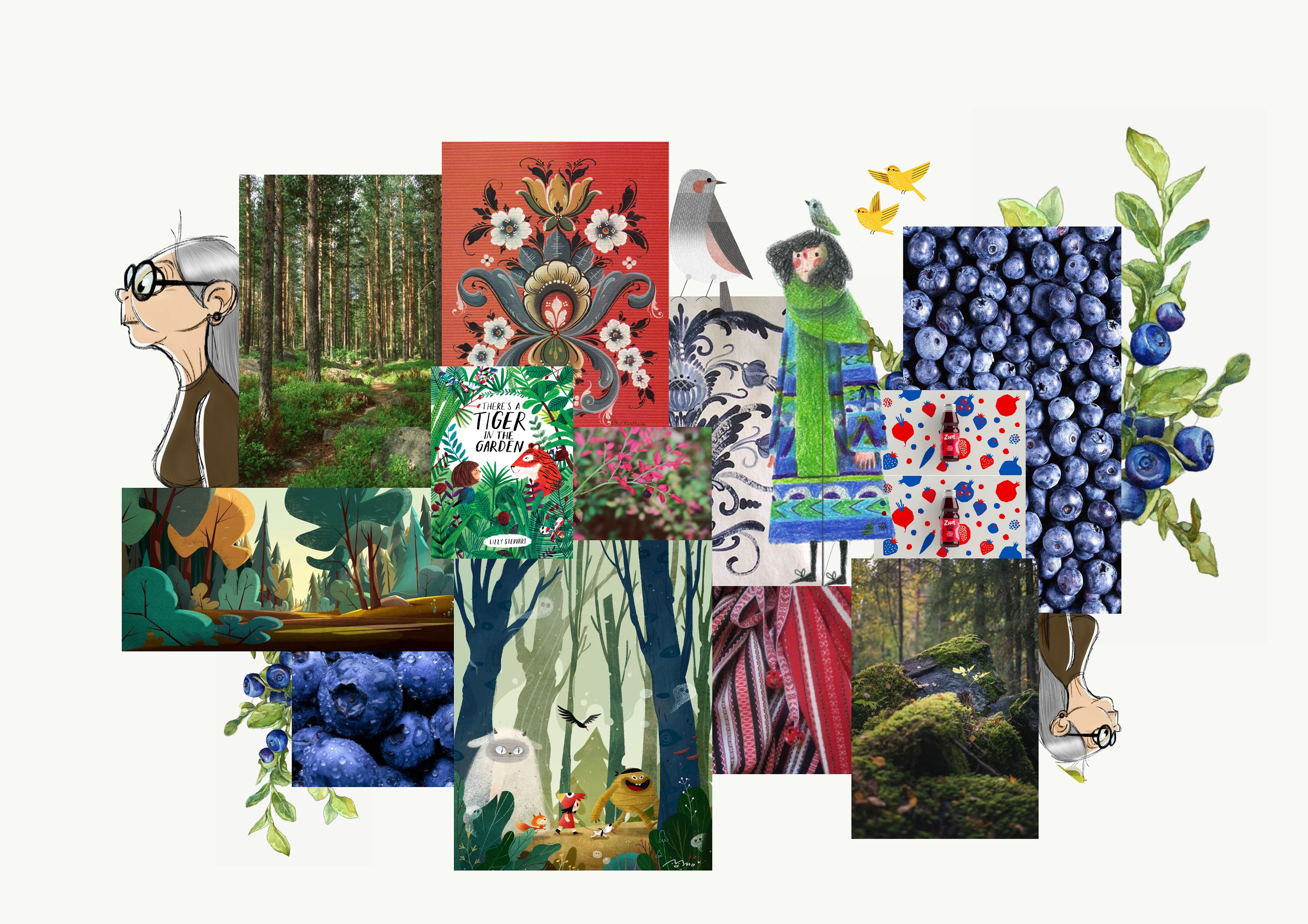 The decorative elements are illustrations inspired by the Swedish forrest and Dalarna, the part of Sweden in which the product is made. The cauldron connects to the story of the origin of this product.